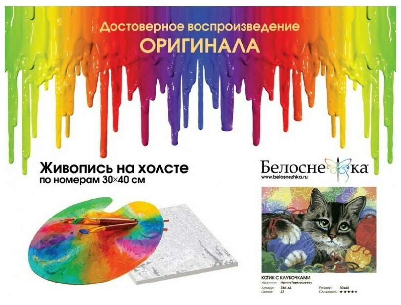 На сегодняшний день товар «Роспись по холсту Белоснежка Котик с клубочками 30*40см. Картина по номерам (786-АS)» можно купить с кешбеком в 1 магазине: Яндекс.Маркет