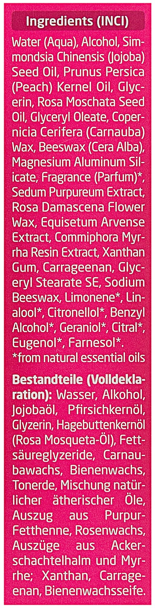 Заботится о коже лица при появлении первых морщинок. Мягкий, легко впитывающийся дневной и ночной крем для нормальной и склонной к жирности кожи. Изысканное масло семян розы москета и богатое микроэлементами масло жожоба защищают кожу от высыхания и долговременно поддерживают водно-жировой баланс кожи. Композиция из растительных экстрактов очитка, хвоща полевого и мирры активирует строящие процессы кожи и защищает от потери жизненных сил. Натуральный тонкий аромат дамасской розы настраивает на внутреннюю гармонию, имеет ароматерапевтический эффект. Данный товар имеет маркировку ЭКО.