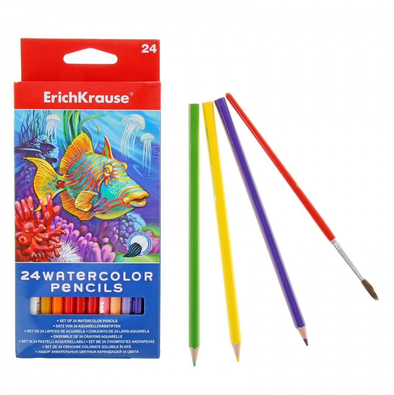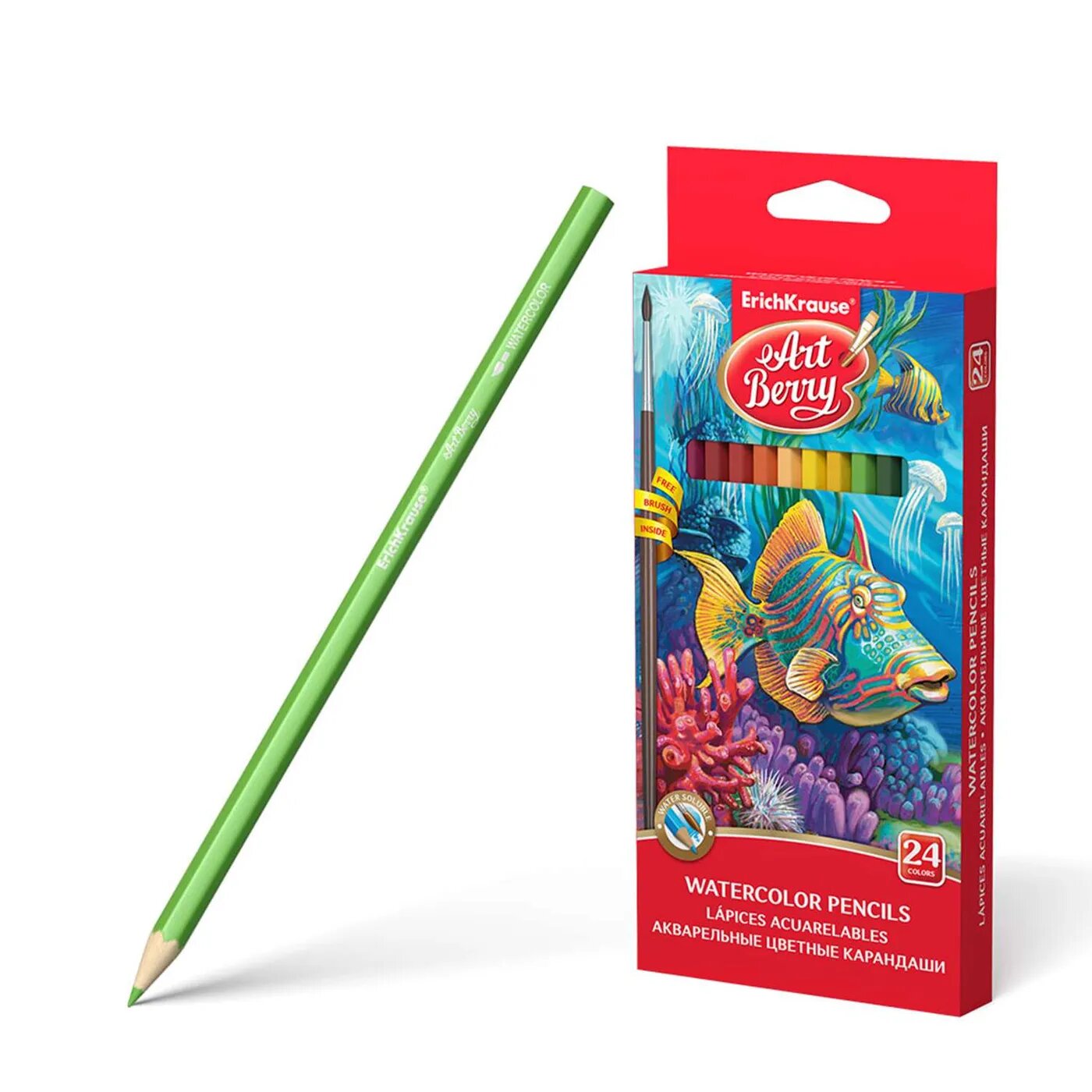 Карандаши цветные Erich Krause акварельн. с кисточ. 24 шт. (32882)