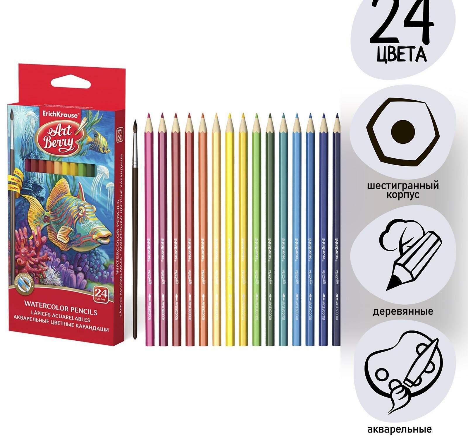 На сегодняшний день товар «Карандаши цветные Erich Krause акварельн. с кисточ. 24 шт. (32882)» можно купить с кешбеком в 1 магазине: Яндекс.Маркет