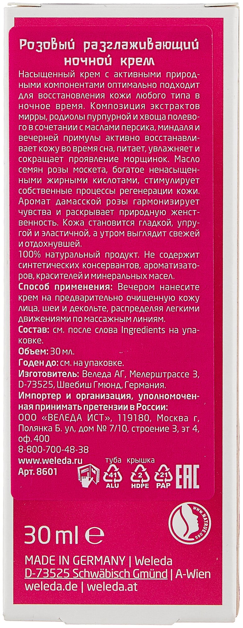 Разглаживающий ночной крем уход 30 мл | Weleda