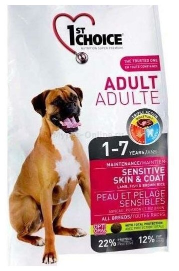 - Обзор корма 1st Choice Adult Sensitive Skin and Coat All Breeds
