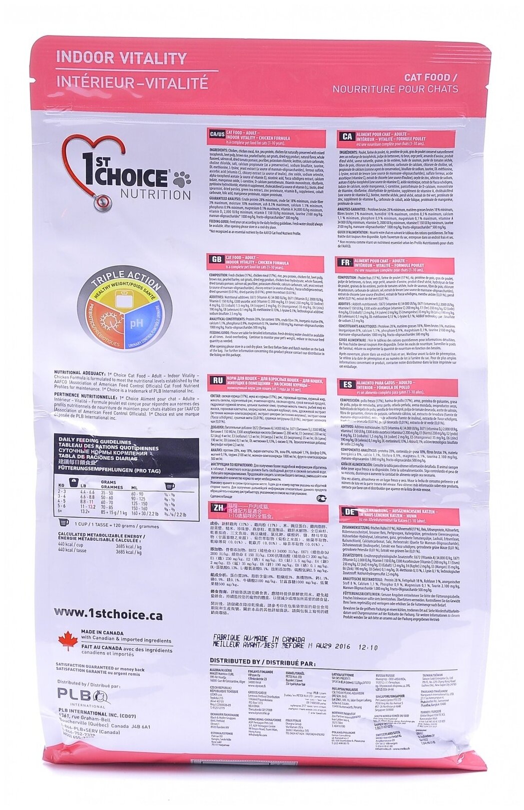 1st choice сухой корм для кошек :1st Choice Indoor Vitality Фест Чойс сухой корм для домашних кошек Цыпленок 2,72 кг для животных. Полноценный корм для кошек на основе мяса курицы с добавлением муки из мяса курицы и риса.