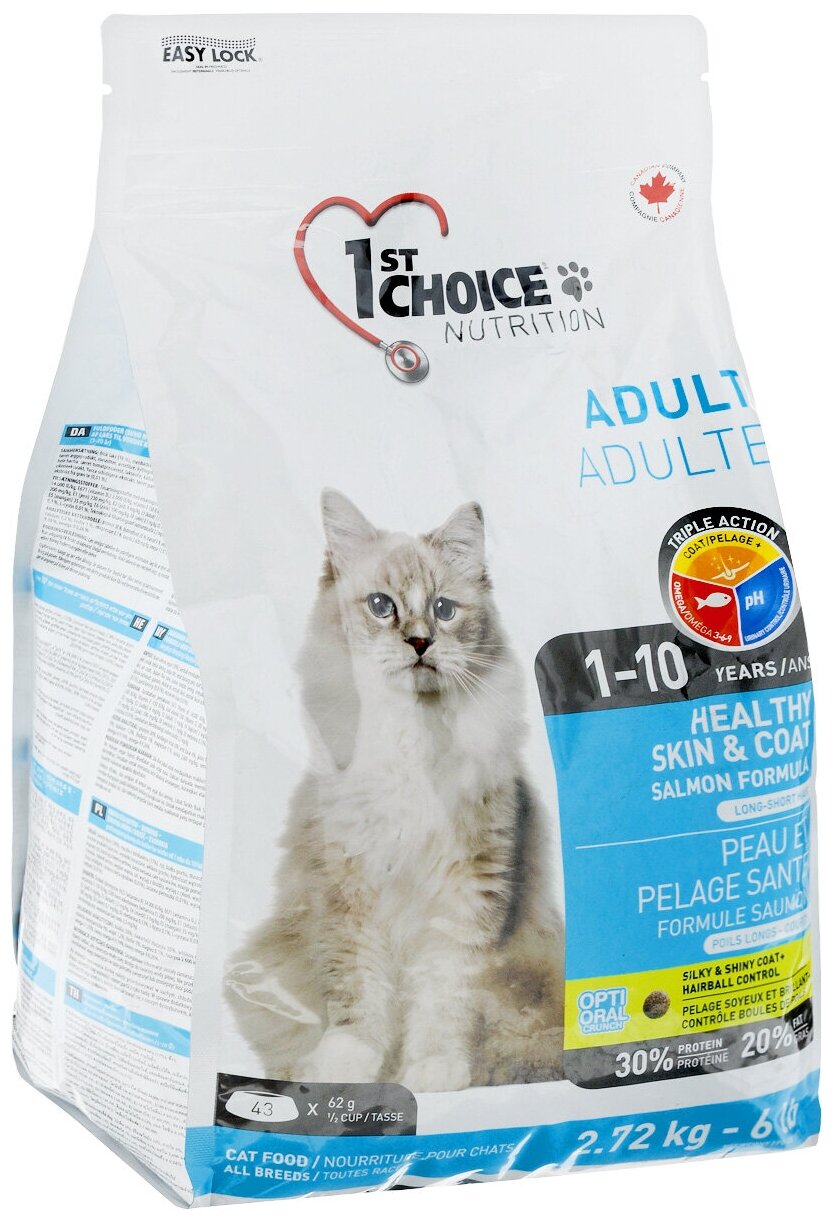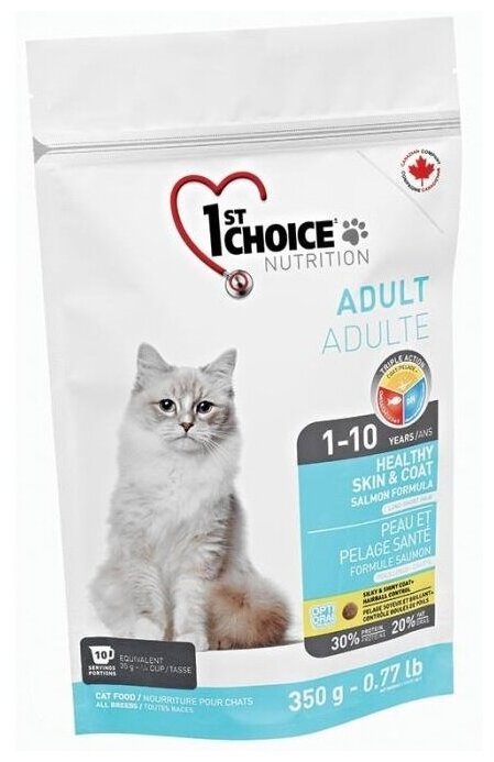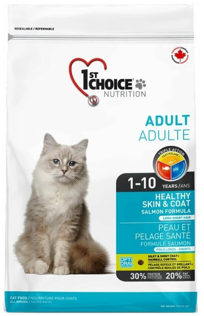 Сухой корм 1st Choice Healty skin and coat для взрослых кошек Здоровая кожа и шерсть лосось 5.44кг (56670)