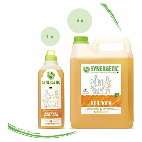 | Средство для мытья пола и поверхностей SYNERGETIC 5 л, c дезинфицирующим эффектом, биоразлагаемое 605556 101500 универсальное средство для ежедневной и генеральной уборки пола и других поверхностей | столов, стен, потолка. |