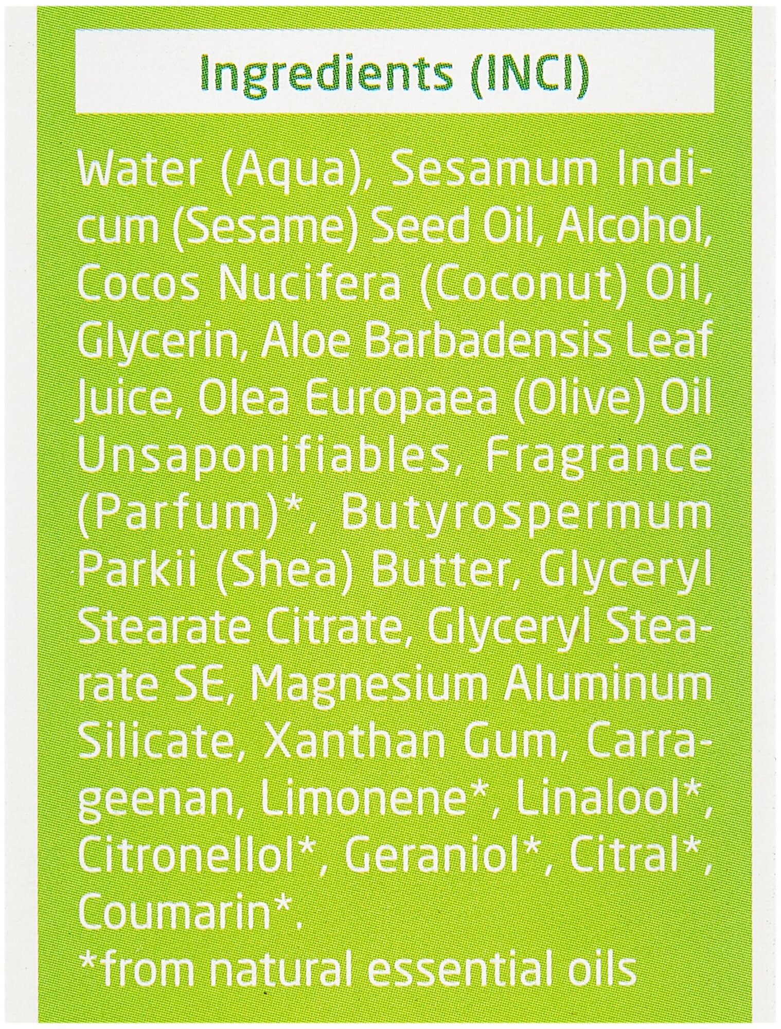 Натуральное молочко с невероятно легкой тающей текстурой идеально подходит для ежедневного ухода за телом. Быстро впитывается, приятно охлаждает и не оставляет ощущения липкости. Нежнейшие масла кунжута и кокоса, богатые ненасыщенными жирными кислотами, питают и придают коже особую мягкость, гель алоэ вера предохраняет от потери влаги и поддерживает тонус. Сочный и бодрящий аромат чистейших эфирных масел заряжает энергией и дарит заряд позитива. Средство идеально для ухода в летнее время. Подходит для использования после загара. Продукт не содержит силиконов, минеральных масел, синтетических ароматизаторов, красителей и консервантов.