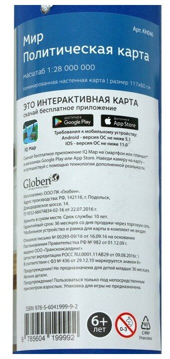 Точной, подробной и четкой. А какой должна быть карта, которую хочется повесить на стену? Красочной, с познавательными картинками и бесконечным множеством деталей для разглядывания. GLOBEN смог соединить все это вместе. Карты GLOBEN выполнены из качественной ламинированной бумаги. Глянцевая поверхность выглядит привлекательно и защищает поверхность от повреждений. А четкая печать передает даже мелкие нюансы изображения.