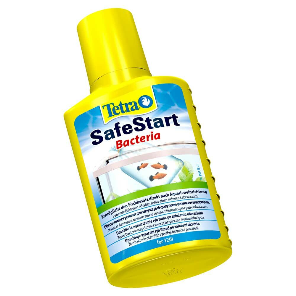 Tetra Safe Start бактериальная культура для запуска аквариума. Создает биологическую среду пригодную для немедленного запуска рыб в новый аквариум. - SafeStart содержит специальным образом выращенные живые нитрифицирующие бактерии, которые надежно снижают уровни ядовитых аммиака и нитрита в аквариуме - снижают содержание аммиака в 14 раз и нитрита в 10 раз - можно применять в только что установленном аквариуме, после частичной замены воды и после использования медицинских препаратов - SafeStart идеально использовать в комбинации с AquaSafe, который с формулой BioExtract создаёт оптимальные условия для бактерий - хранится 12 месяцев без охлаждения при температуре между 2°C и 30°C - для всех пресноводных аквариумов