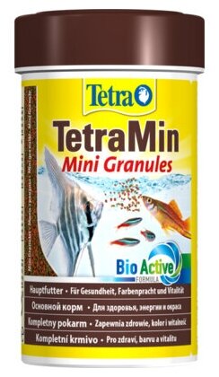 TetraMin Mini Granules – основной корм в гранулах для небольших декоративных рыбок. медленно опускающиеся на дно аквариума гранулы гарантируют полноценное и взвешенное питание и обеспечивают прекрасный рост ваших питомцев с запатентованной* формулой BioActive- для продолжительной и здоровой жизни Ваших питомцев корм замечательно подходит для любых маленьких декоративных рыбок, а также для мальков