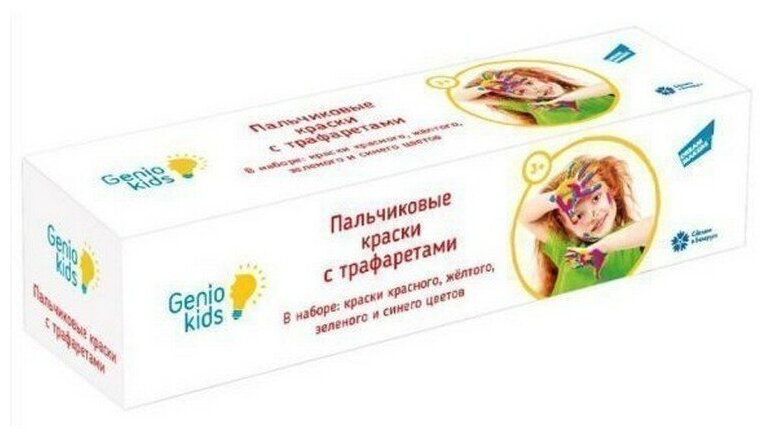Краски пальчиковые Genio Kids 4 цветов по 40 мл с трафаретом. С пальчиковыми красками от Genio Kids рисование превратится в веселую и увлекательную игру, ведь рисовать можно не используя никаких дополнительных инструментов, достаточно своих ручек. Эти краски насыщенных оттенков абсолютно безопасны для детей. Их можно использовать для рисования на бумаге, стекле, картоне и многих других поверхностях. При этом они не стекают, не капают и смываются с пальчиков теплой водой. Особенности: - в наборе 4 цвета: красный, синий, зеленый, желтый; - объем баночки: 40 мл; - специальный состав на водной основе; - ребенок легко оставит след на бумаге или другой поверхности в процессе рисования.