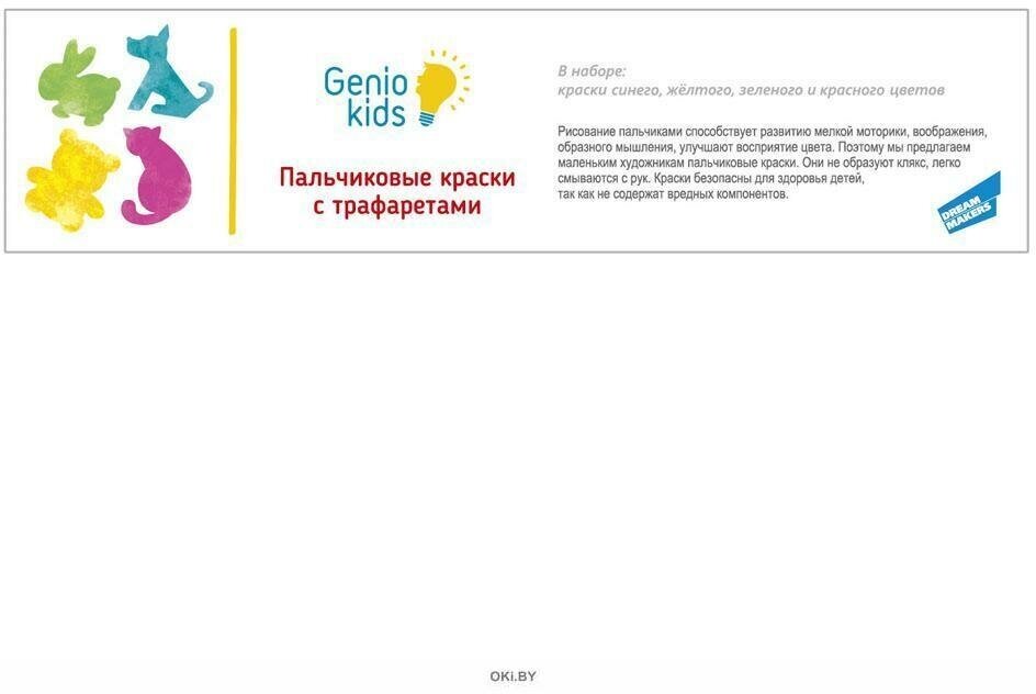 На сегодняшний день товар «Набор для творчества Genio Kids Пальчиковые краски с трафаретом (TA1401)» можно купить с кешбеком в 1 магазине: Onliner BY