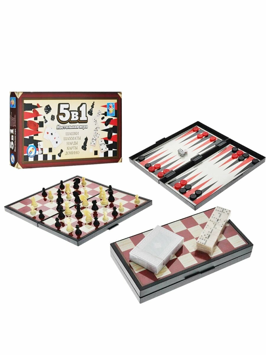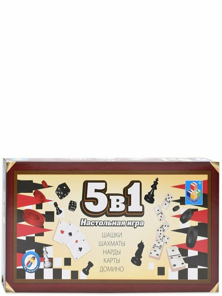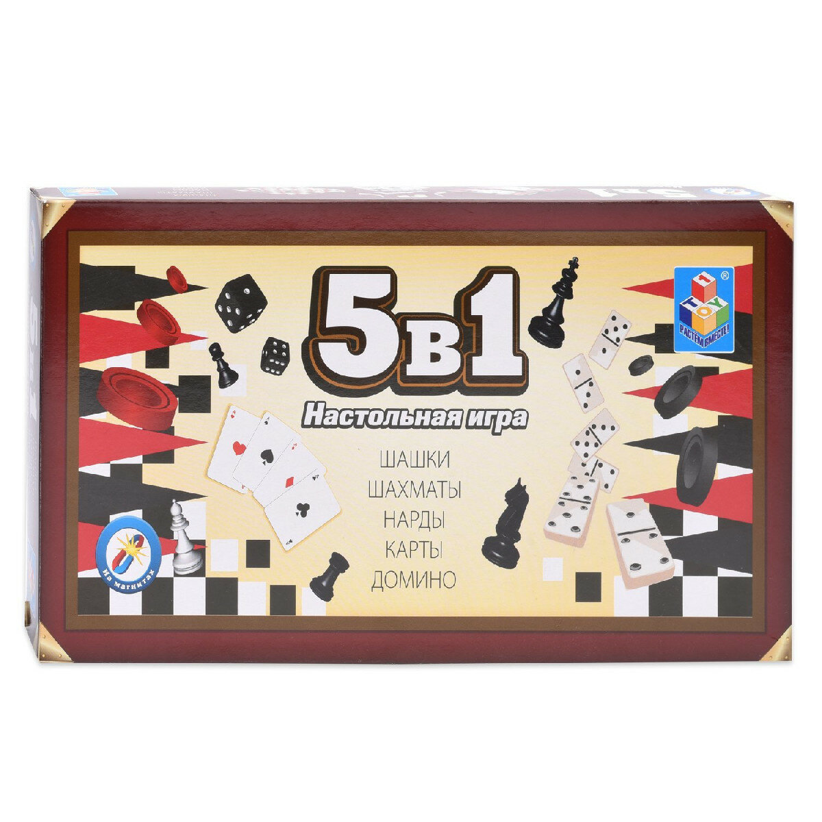 Настольная игра 1Toy 5в1 Шашки шахматы нарды карты домино на магните (Т12060)