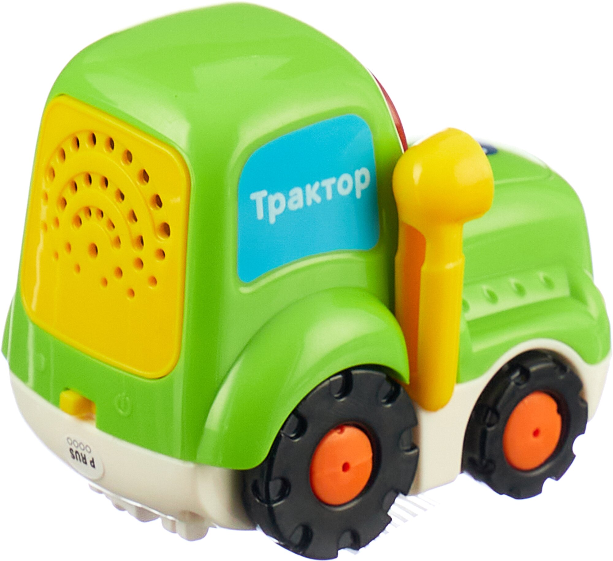 Трактор – специально созданная для маленьких рук ребенка машинка серии Бип-Бип Toot-Toot Drivers. В игрушке встроена световая кнопка, с помощью которой можно активировать музыку и звуки. Транспортные средства серии Бип-Бип Toot-Toot Deivers снабжены технологией SmartPoint TM, благодаря которой электронные транспортные средства светятся и реагируют на специальные локации SmartPoint, воспроизводя разные фразы, веселые мелодии, песни или звуковые эффекты.
