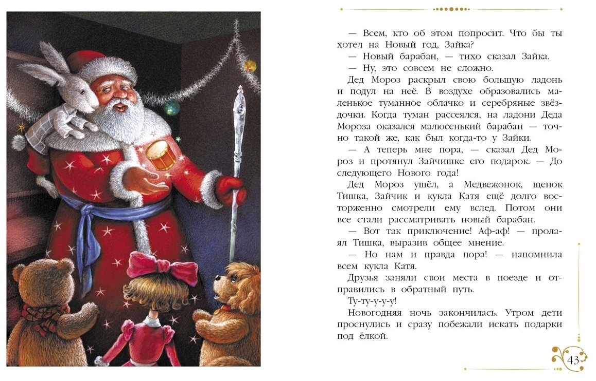 Почему же однажды, в новогоднюю ночь, Зайка решил уйти куда глаза глядят? Что было дальше? Удалось ли верным друзьям найти его? Как помог игрушкам Дедушка Мороз?