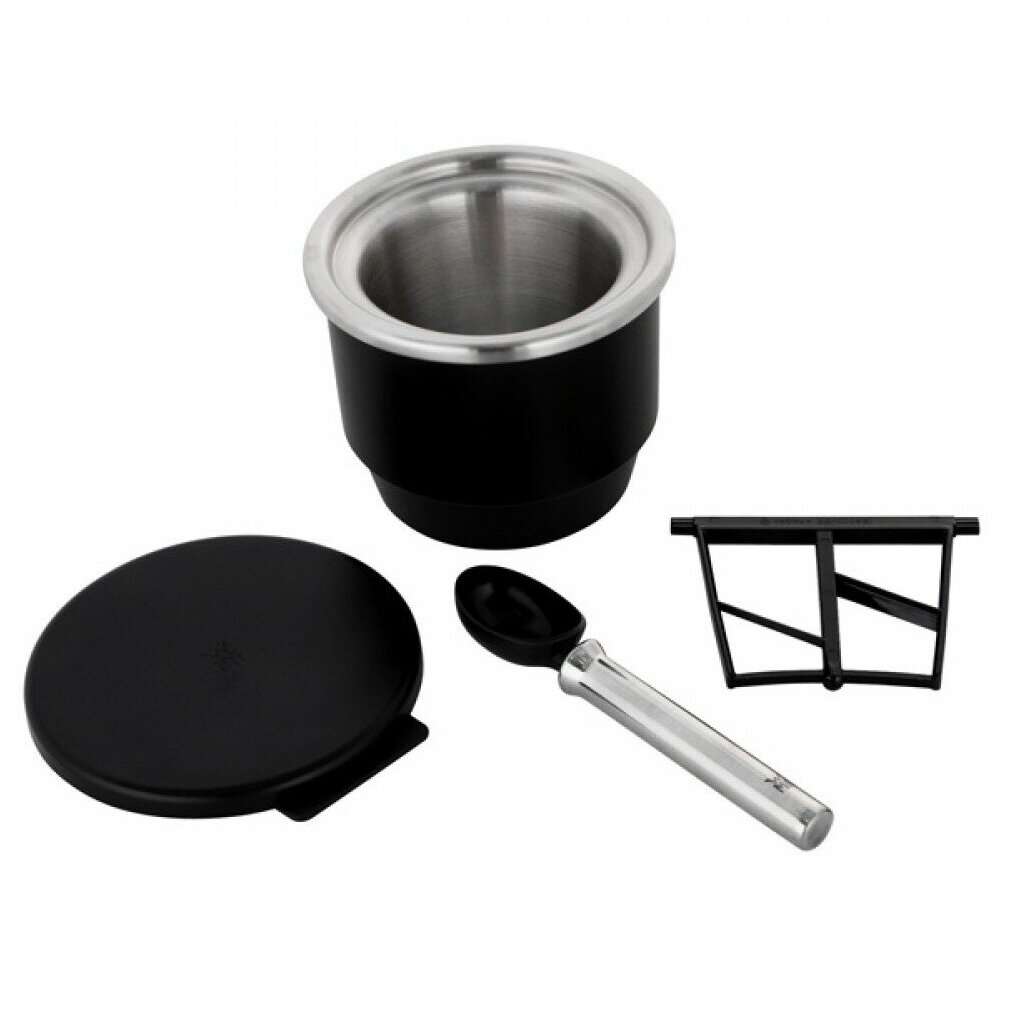 WMF - компактный кухонный прибор. Мороженица позволяет готовить различные сорта мороженого, такие как замороженный йогурт, сливочное мороженое и сорбет. При необходимости приготовления сразу нескольких сортов мороженого или больших объемов одного сорта в качестве принадлежности доступна дополнительная морозильная емкость с крышкой.