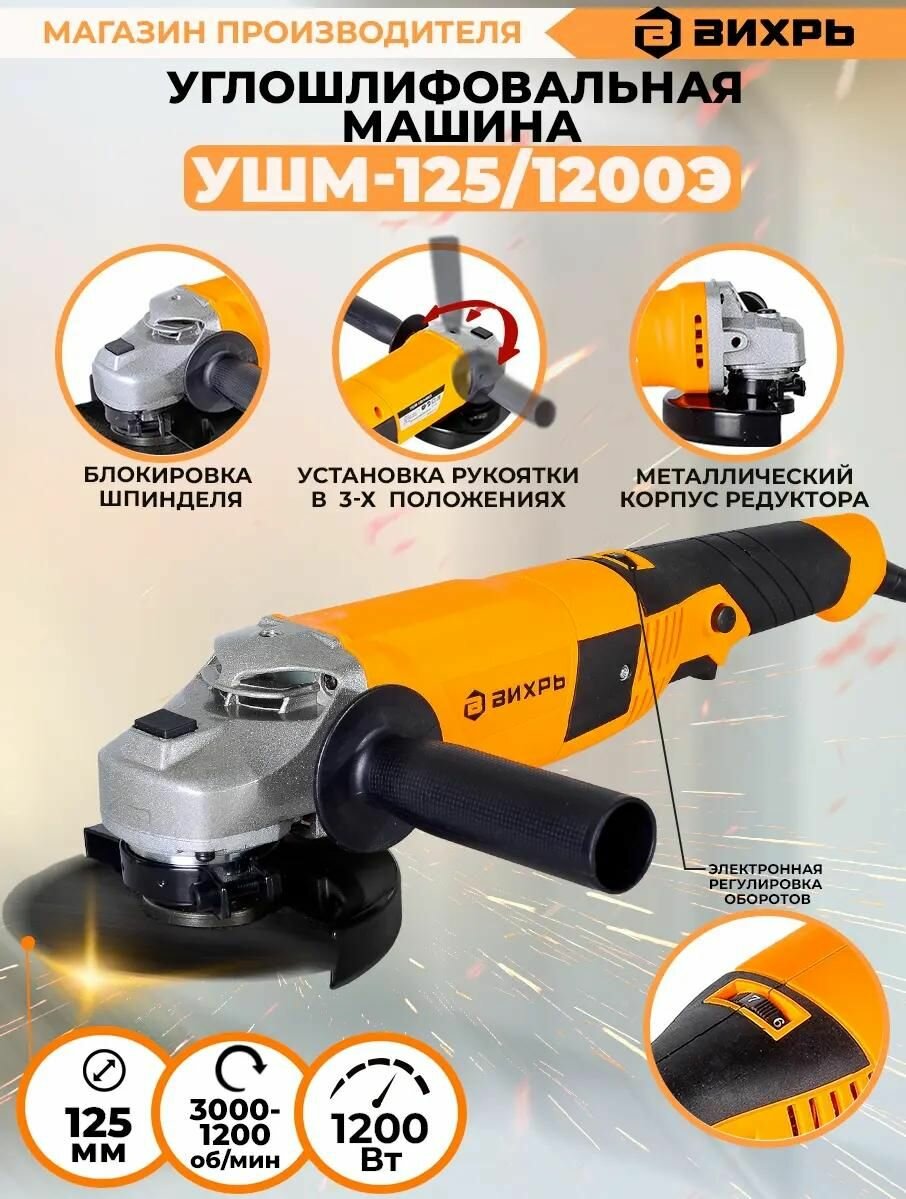 Обзор углошлифовальной машины Вихрь УШМ-125/1200Э