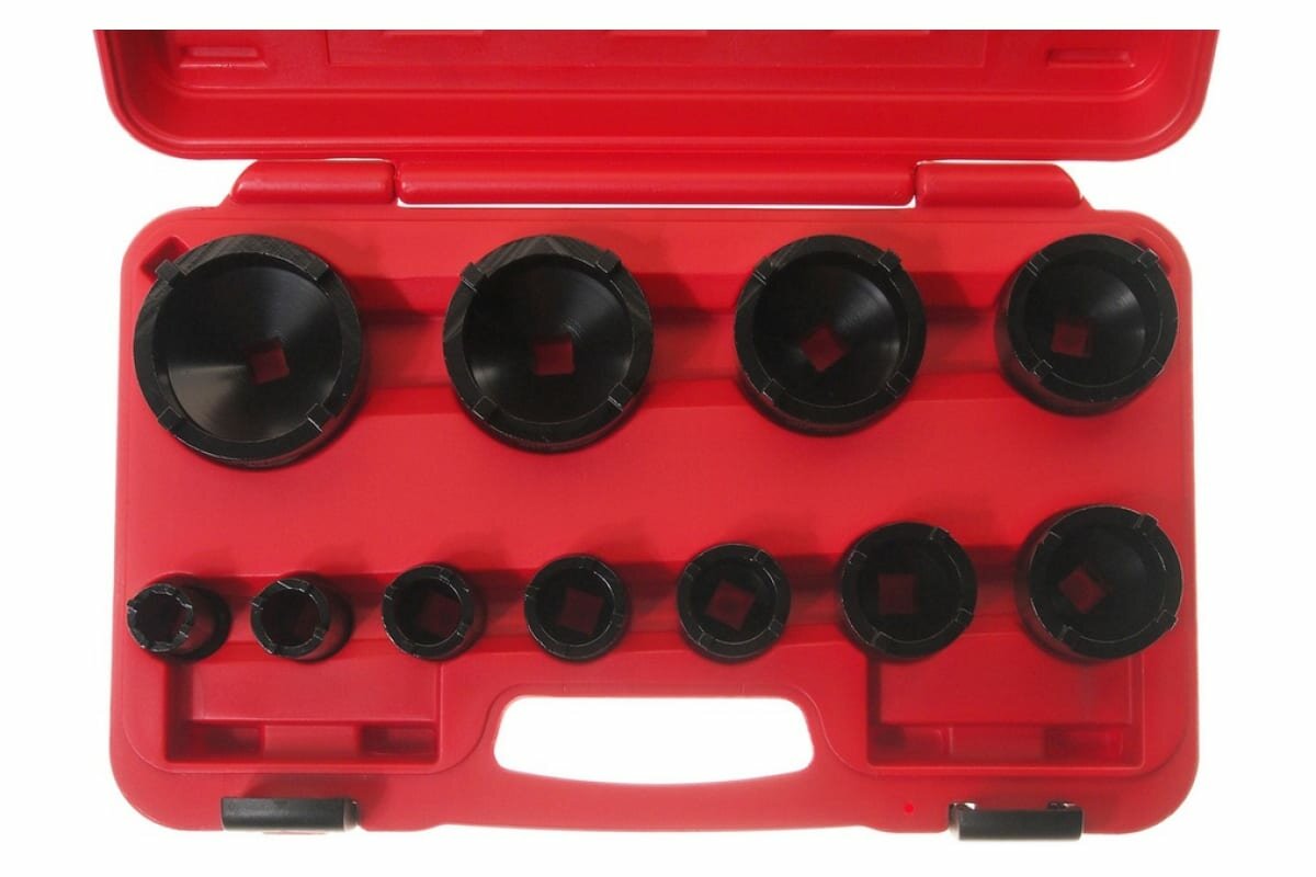 Набор головок зубчатых внешних JTC , 1/2", в кейсе, 11 предметов служит для проведения монтажно-демонтажных работ при ремонте и обслуживании автомобилей. Предназначается для гайки крепления подшипника дифференциала, ступичной гайки передней/задней осей и гайки крепления фланца ведущей оси легковых автомобилей и внедорожников. Преимущества Изготовлен из высококачественных материалов Размер: 1/2" х 60мм Имеет длительный срок эксплуатации