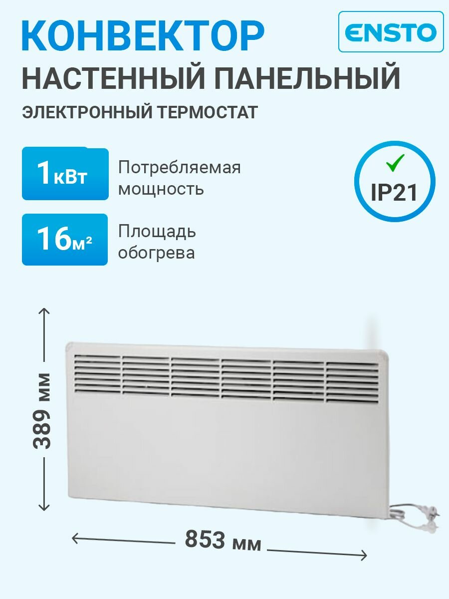 Конвектор Ensto (Энсто) отличается современным дизайном и компактным исполнением корпуса, поэтому удобно монтируется и хорошо вписывается в интерьер дома или офиса. Оборудование плавно обогреет комнату с малой площадью, и при этом не удалит из воздуха влажность. Прибор укомплектован электронным термостатом, который характеризуется надёжностью и высокой точностью выдаваемых настроек.