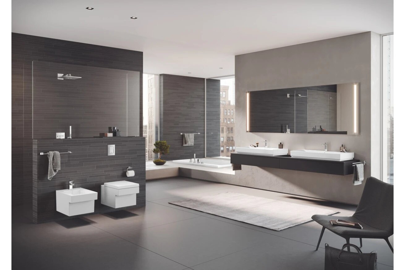 Преобразите свою уборную с помощью архитектурного стиля и передовых технологий. Дизайн этого подвесного унитаза GROHE Cube Ceramic был вдохновлен искусством кубизма и отлично подойдет минималистичному стилю современных туалетных комнат. Инновационное покрытие GROHE PureGuard делает унитаз невероятно гигиеничным: оно сокращает количество бактерий и создает ультра-гладкую поверхность, на которой грязи просто не за что зацепиться.