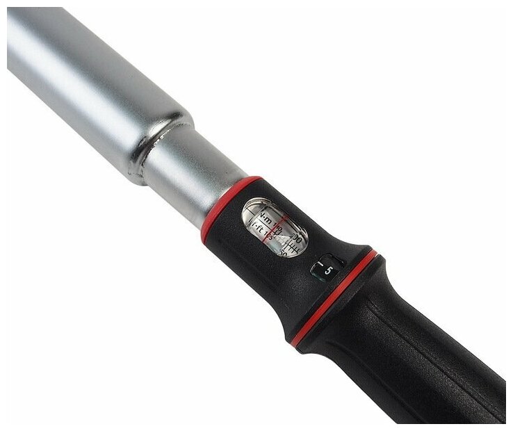 Ключ динамометрический обладает высокой точностью, заводская калибровка для работы в пределах ±3% допуск от установленных параметров (согласно стандарту В107.14М. от 20% до 100% диапазона работы инструмента). Храповый механизм выполнен из хром-ванадиевой стали, полностью закаленная рукоятка. Работает в двух направлениях. Соответствует стандарту ISO 6789, U.S. Fed.GGG-W686D и ANSI Spec.Управляется уникальной сдвижной системой, позволяющая блокировать установленное значение момента.Настраиваемый квадратный привод для проверки затяжки болтов с нормальной резьбой.Преимущества Черная пластмассовая рукоятка (полиамид) усиленная стекловолокном, устойчивая к воздействию технических жидкостей (масла, бензина) и предотвращает скольжение руки Двойная шкала с делениями Н·м и LB/FT (фунто-фут). Дополнительная шкала на 10 делений выбирается путем вращения рукоятки Является высокоточным инструментом и не предназначен для использования в ослаблении болтов и гаек Легкочитаемая шкала под стеклом с эффектом лупы, делает показатели больше и читабельнее, что важно при работе в слабо освещенных и труднодоступных местах