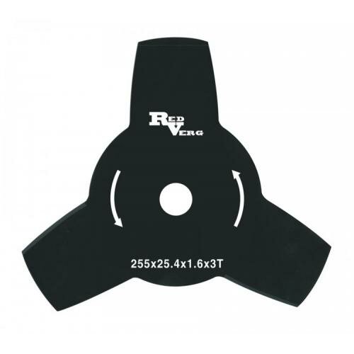 Диск для триммера 255х25,4 мм, 3 зуба REDVERG устанавливается на триммеры для особо жесткой травы, мелких кустов и бурьяна.