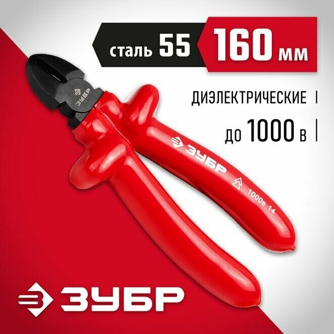 Бокорезы Зубр "Электрик" 2214-5-16_z02 диэлектрические, высоковольтные до ~1000В, маслобензостойкая рукоятка, 160мм
