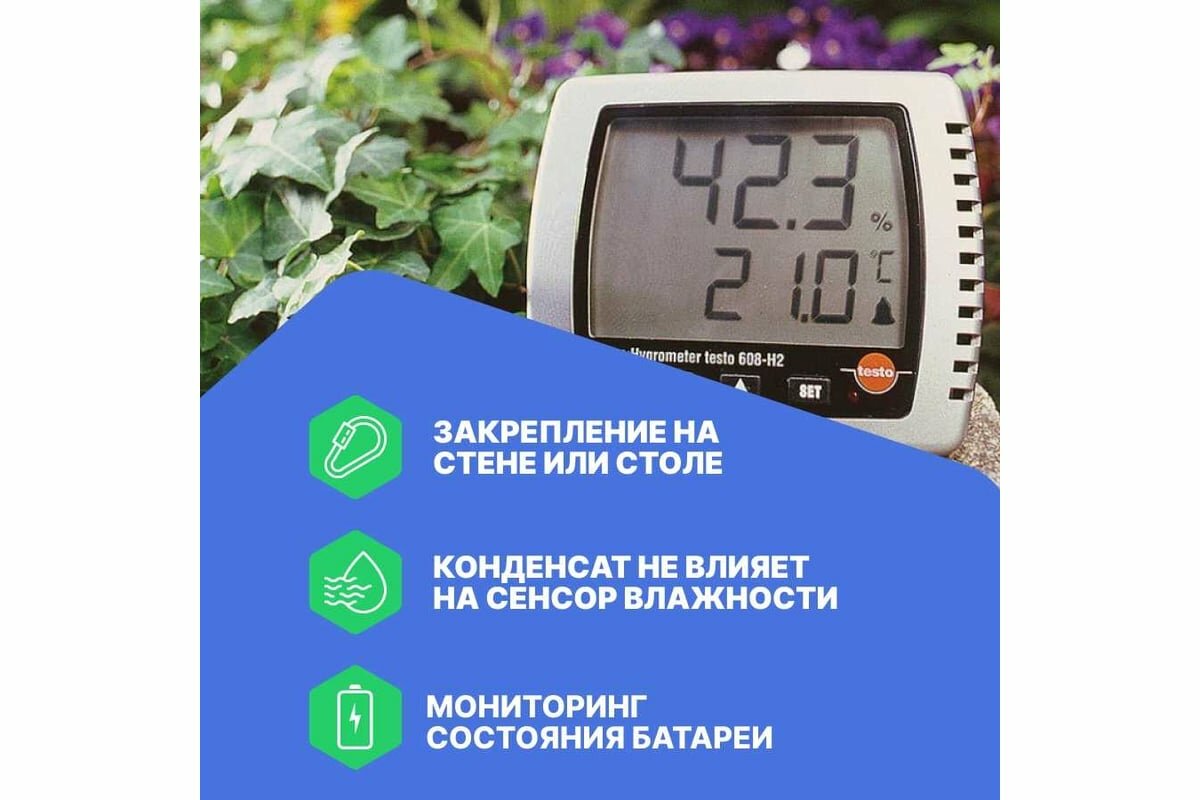 Гигрометр Testo 608-Н1 с поверкой по температуре оснащен большим дисплеем, что обеспечивает удобное считывание полученных данных. Его можно крепить на столе или стене. Сенсоры высокой стабильности гарантируют долгую надежность результатов измерений. Модель прошла процедуру поверки по температуре и имеет соответствующее свидетельство.