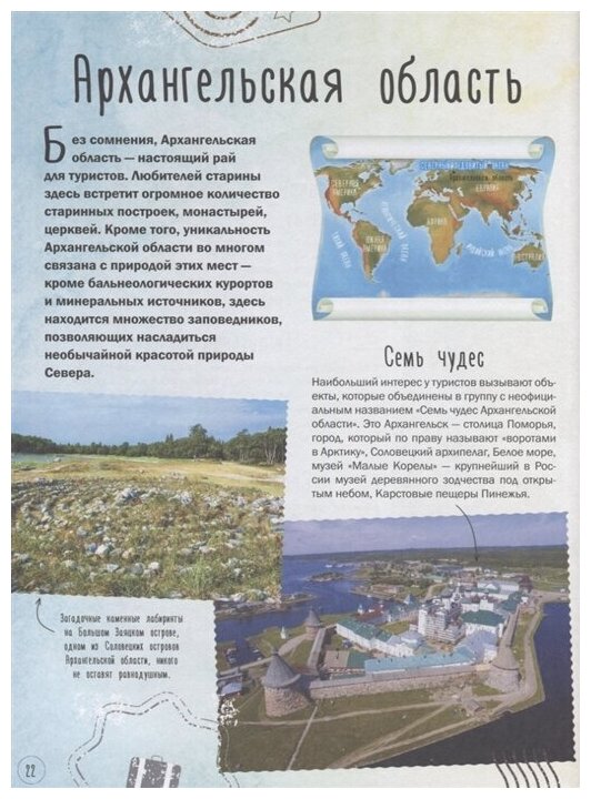 Это замечательное издание поможет ребятам ответить на вопрос: "Зачем люди путешествуют?" Оно расскажет о прекрасных городах с тысячелетней историей и о современных мегаполисах, о высоких горах и таинственных пещерах. Статьи об известных парках развлечений, знаменитых стадионах и центрах активного отдыха будут интересны мальчикам, а информация о роскошных музеях и веселых музыкальных фестивалях придется по вкусу девочкам. Путешественники посетят легендарную пещеру "Музейная" на Алтае и башню Свободы в Майами, полюбуются с колеса обозрения на сверкающий огнями Сингапур, прогуляются по роскошным паркам Петергофа, оценят средневековые костюмы на рыцарском турнире в Толедо. Парижский Диснейленд и "Порт Авентура" в Барселоне, фестиваль воздушных шаров в Кавказских Минеральных Водах и "Лазер Гейм" в Белграде, копенгагенский "Тиволи" и развлекательный кинокомплекс "Юниверсал Студиос Голливуд" - с этим изданием нет ничего невозможного. Для путешествия по его страницам не нужны визы и билеты, а не заблудиться здесь помогут красочные иллюстрации и понятные карты.