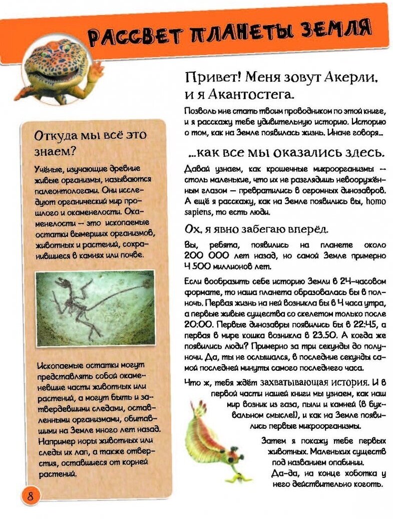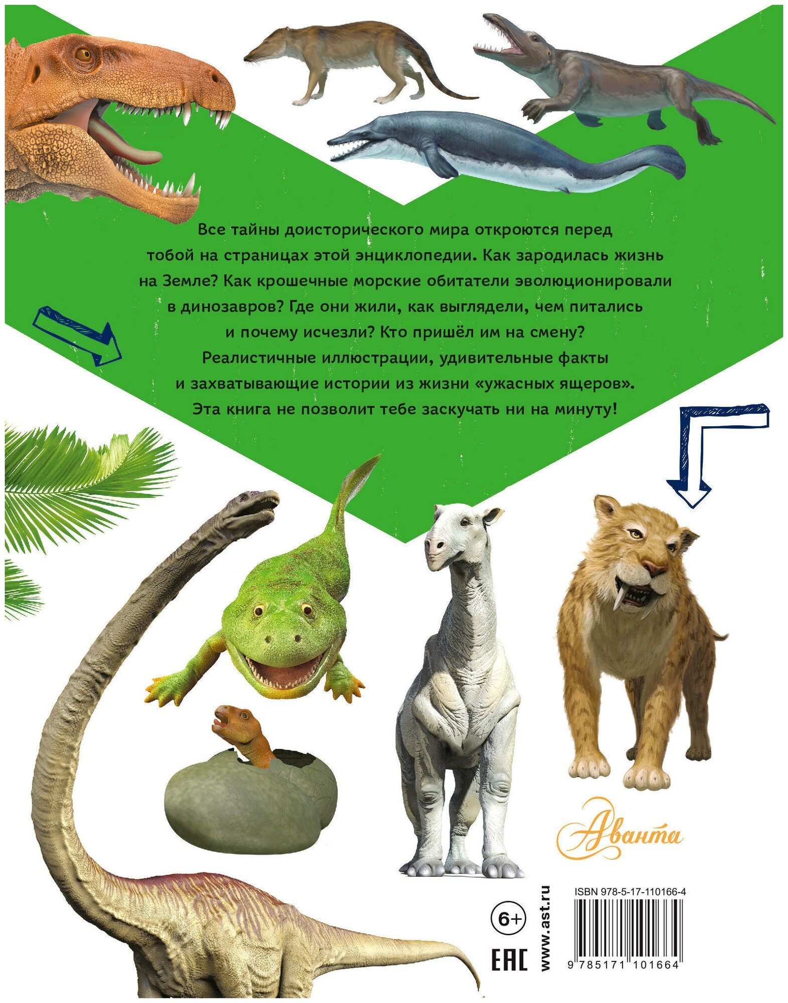 "Энциклопедия динозавров и самых необычных доисторических животных" отправит читателя в удивительное приключение по доисторическому миру. С момента образования Земли до полного вымирания динозавров и появления млекопитающих. Как и почему морские жители выбрались из воды на сушу? Когда появились динозавры, кем были их предшественники и кто пришёл вслед за ними?