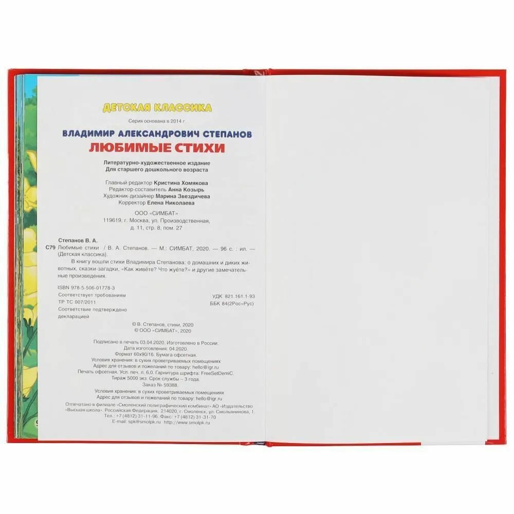 "УМКА". 50 ЛЮБИМЫХ СТИХОВ. В. СТЕПАНОВ (ДЕТСКАЯ КЛАССИКА). ТВЕРДЫЙ ПЕРЕПЛЕТ. БУМАГА ОФСЕТНАЯ. ФОРМАТ: 140Х215 ММ. ОБЪЕМ: 96 СТР. в кор.24шт