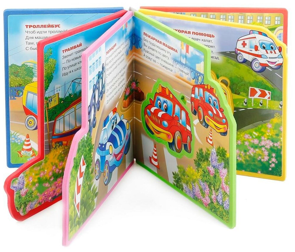 Книжка EVA с вырубкой-закладками и пазлами "Машинки" - уникальная новинка 4 в 1. Странички и фигурные пазлы мягкие, их приятно трогать и сжимать. На каждом развороте вкладыш с изображением машинки, который ребёнок сможет самостоятельно достать из углубления с выемкой для пальчика и вставить обратно. С фигурным пазлом можно играть, под ним в книге располагается картинка-сюрприз! Вырубка в форме машинок служит закладками на их странички. Книжка содержит стихи Владимира Степанова о машинах. Красочные иллюстрации привлекут внимание ребёнка. Развивает тактильные ощущения, пространственное мышление и логику. Безопасный мягкий материал EVA идеально подходит для развития детской сенсорики и мелкой моторики. Размер 180 х185 мм. Объём 5 разворотов, 5 пазлов.