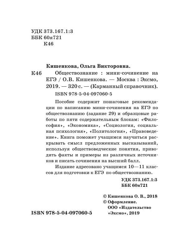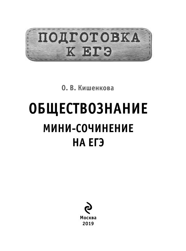 Подготовка к ЕГЭ. Обществознание. Мини-сочинение на ЕГЭ (Кишенкова Ольга Викторовна); ООО "Издательство "Эксмо", 2018