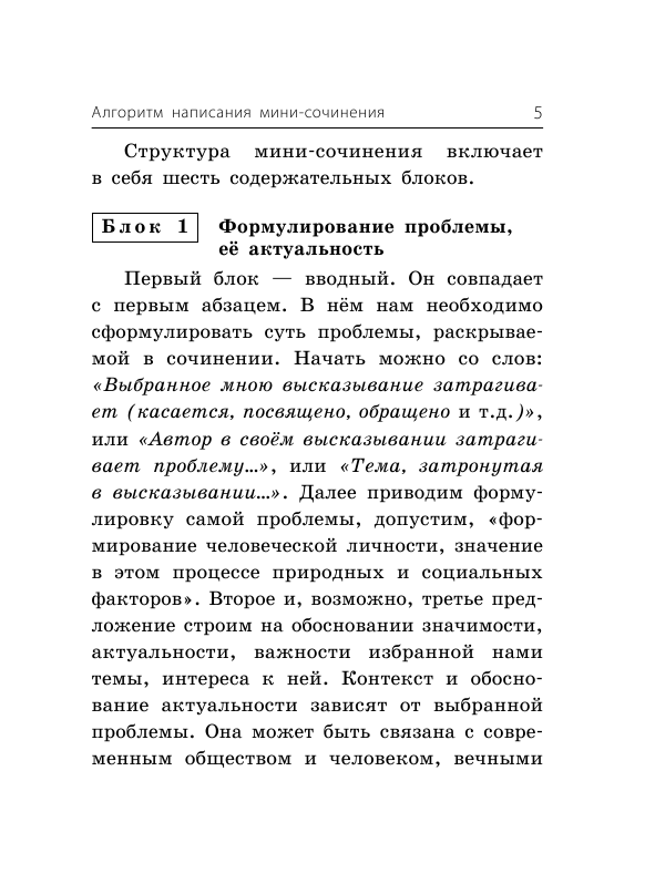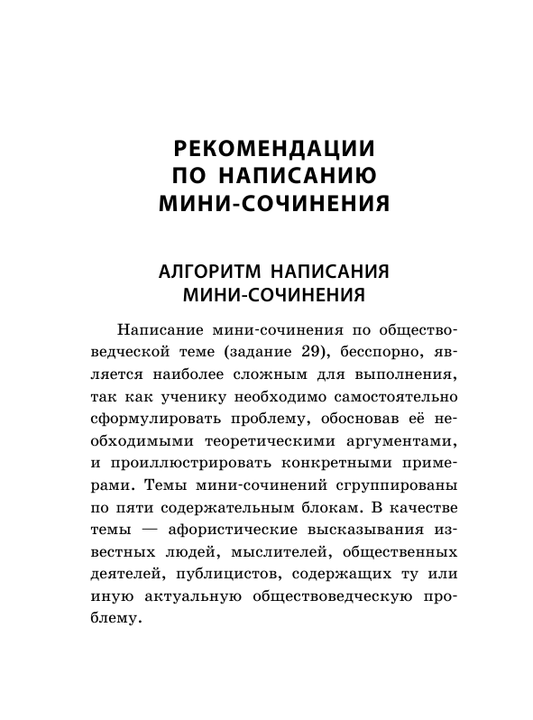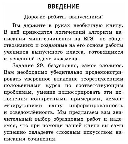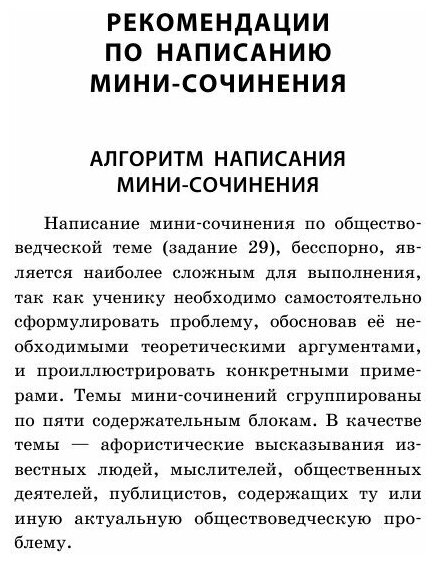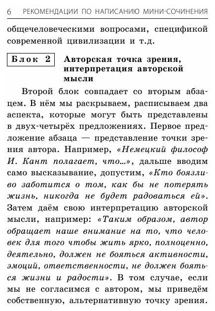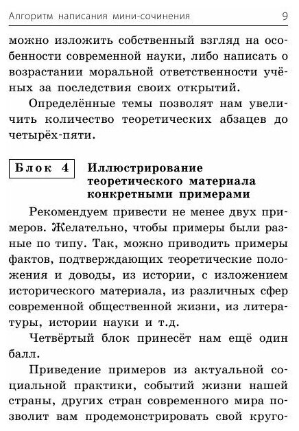 Плюс книги - много сочинений по всем темам, которые могут предлагаться на экзамене. Иногда на одну тему приводится несколько вариантов. Что касается методики, то одной этой книги будет недостаточно, хотя рекомендации по написанию и критерии автор приводит. Думаю, книга полезна для анализа сочинений, поиска нужных аргументов. При вдумчивой работе с книгой, думаю, можно научиться и самому писать хорошие эссе. В крайнем случае можно и списать. Книга мини-формата, помещается в карман.