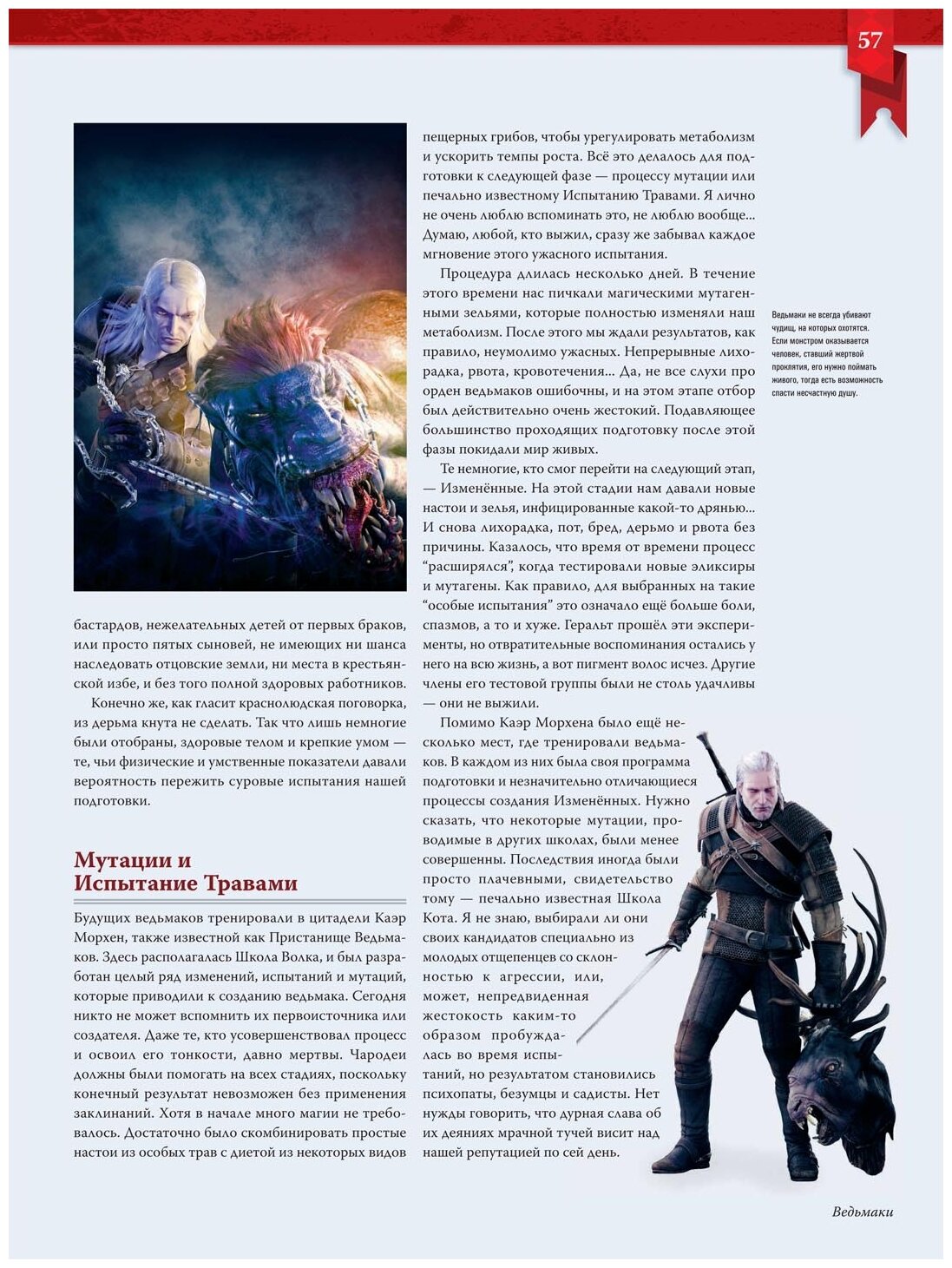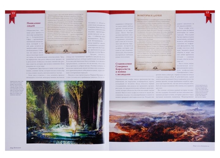 В книге можно и полюбоваться яркими иллюстрациями на добротной плотной глянцевой бумаге, и вспомнить подробности из вселенной "Ведьмака". Тексты вполне информативные, но без "ненужностей". На страницах встречаются и отрывки из литературы с книг про Геральта.