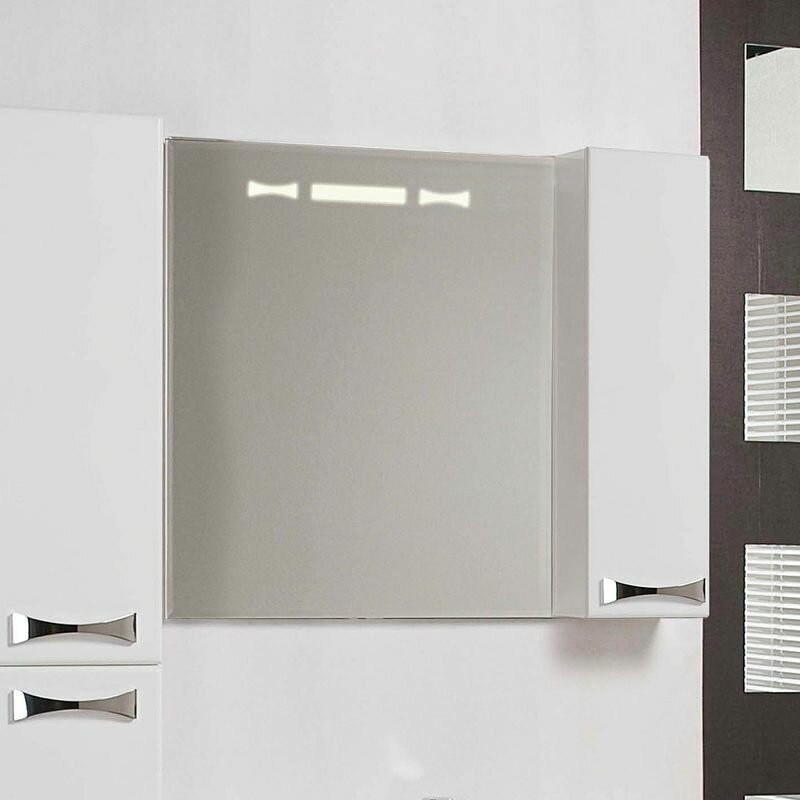 Зеркало со шкафом Акватон Диор 80 R 1A168002DR01R с подсветкой. Вместительный шкаф обеспечит комфортное размещение и хранение принадлежностей. Для использования в ванных комнатах с повышенной влажностью.