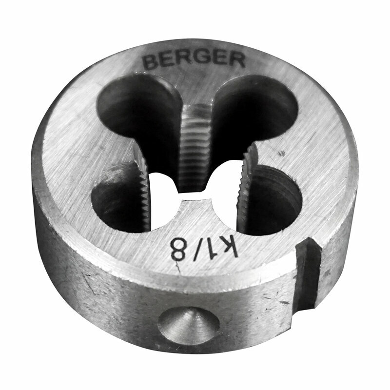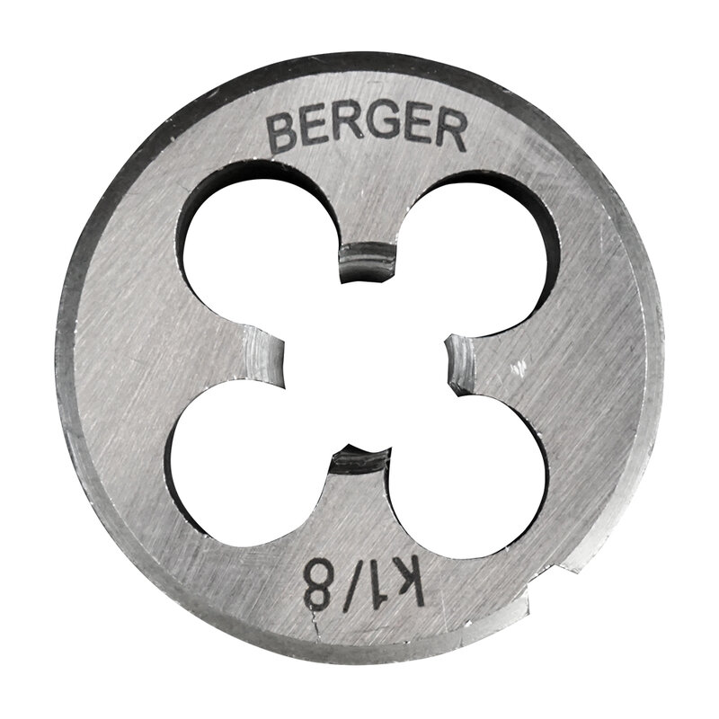 Плашка дюймовая 1/8-27NPT BERGER - режущий инструмент для создания внешней резьбы на металлических заготовках. Отличается превосходными характеристиками по прочности, твердости, стойкости к износу. Выдерживает частые нагрузки. Подходит для использования в профессиональной сфере деятельности.Плашки изготовлены из инструментальной легированной стали 9ХС (средняя твердость 61 HRC), обладают повышенной износостойкостью, упругостью, сопротивлением к изгибу и кручению, стойкостью к контактным нагрузкам. Маркировка плашки облегчает идентификацию.