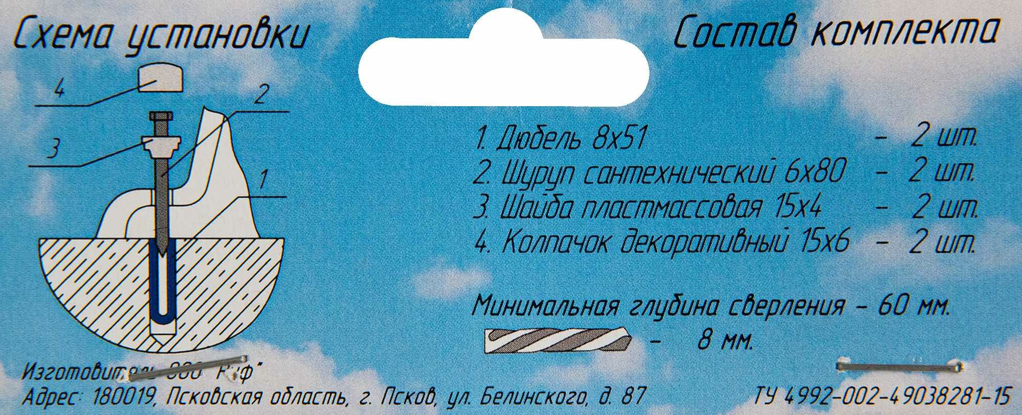 Набор надежных креплений для установки унитаза. Отличается высоким качеством, обеспечивает прочность и надежность фиксации. Реализуется набором, в котором есть все необходимые крепежи для установки унитаза. Набор включает в себя дюбели, крепежные элементы и эластичные прокладки, которые гарантируют прочность установки сантехники. Набор прост и удобен в использовании.