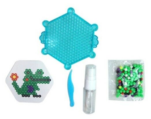 Мозаика 1Toy Aqua pixels состоит из разноцветных бусинок, из которых необходимо выложить какой-нибудь рисунок на специальной подложке. Когда мозаика выложена, ее надо сбрызнуть водой и подождать некоторое время, пока шарики склеятся друг с другом.