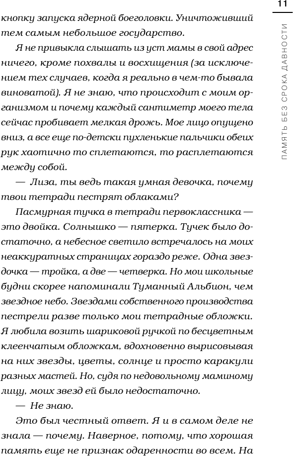 С детства Лиза Кот была не такой как все: её болезнь - гиперамнезия - делала девочку уникальной. Лиза отчетливо помнила каждый день своей жизни. Но вскоре эта способность стала проклятьем. Слишком много в голове Лизы ужасных воспоминаний, слишком много боли она пережила, слишком много видела зла. Но даже ее сверхмозг не может дать ответа, как все изменить…