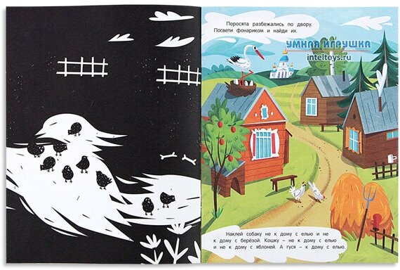 Очень интересная задумка, просвечивать страницы фонариком, чтобы найти спрятанные предметы! Мои дети долго развлекались с этой книжечкой. Мы получили столько удовольствия за такую небольшую цену! Хотя жаль, что она не прочнее тетради, она у нас достаточно быстро разорвалась.