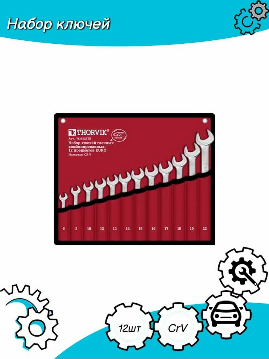 Набор гаечных комбинированных ключей THORVIK W3s12etb