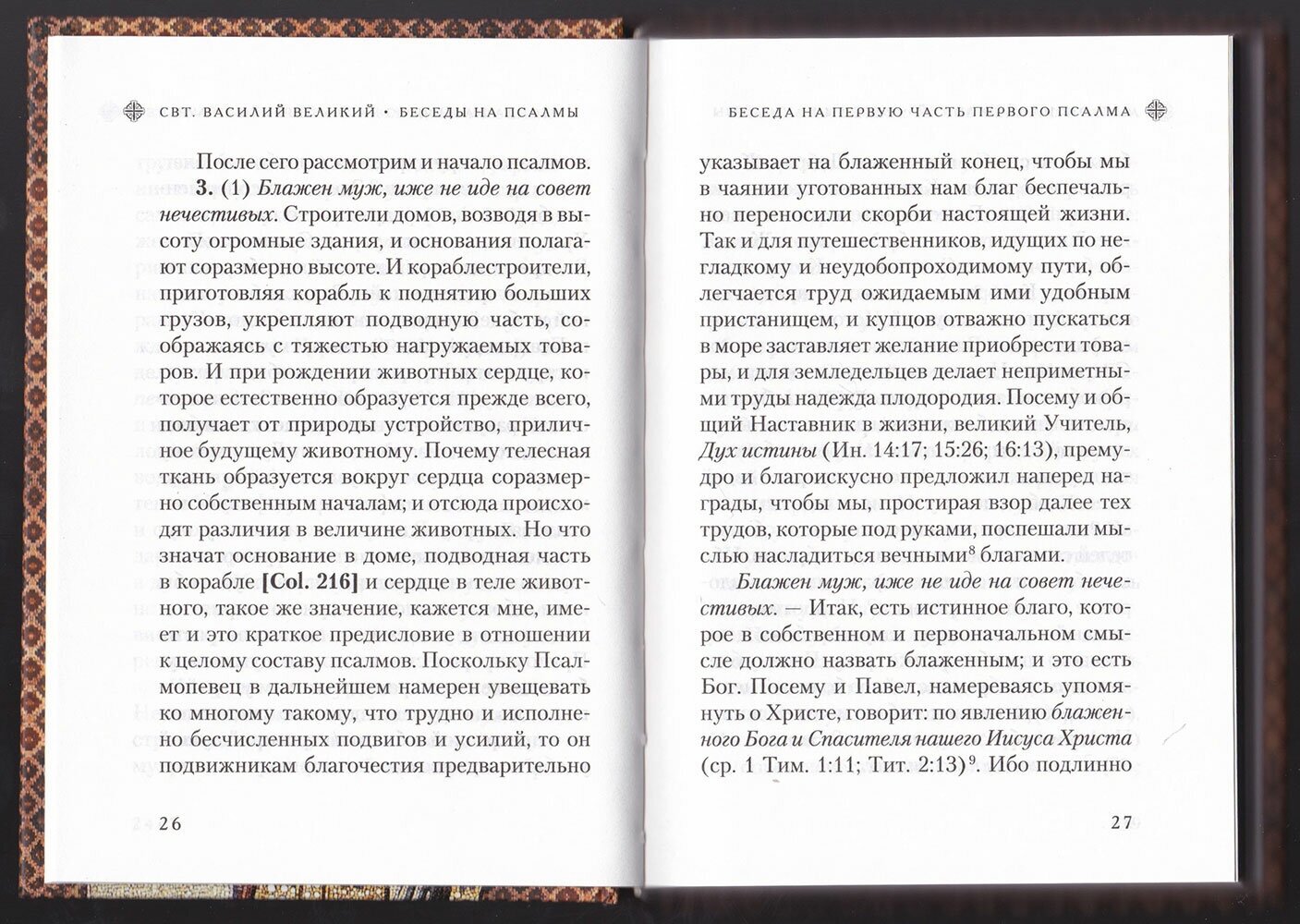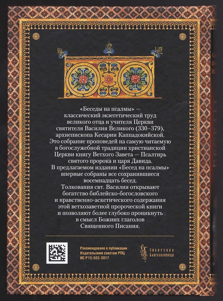 Очень полезная и красивая книга, для духовного чтения толкования свт. Василия бесценны, так как позволяют более глубоко понять смысл Священного Писания. Оформление книги великолепное. Спасибо издательству "Сибирская Благозвонница", все сделано с любовью и уважением к читателям.