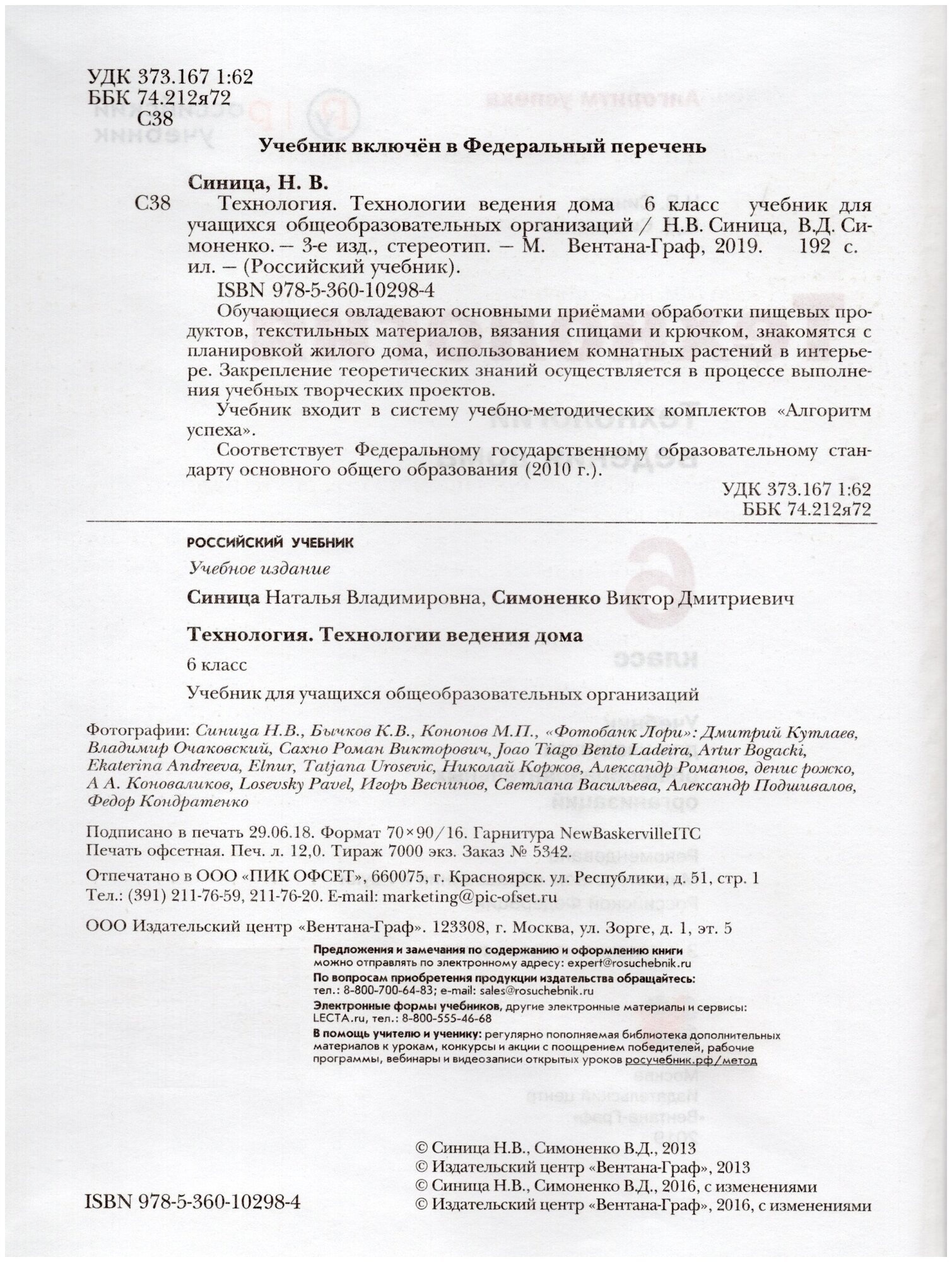 Сервис сравнения цен СкидкаГИД предлагает сравнить цены на товар «Книга: Технология. Технологии ведения дома. 6 класс. Учебник (Симоненко Виктор Дмитриевич, Синица Наталья Викторовна); Просвещение/Вентана-Граф, 2019»