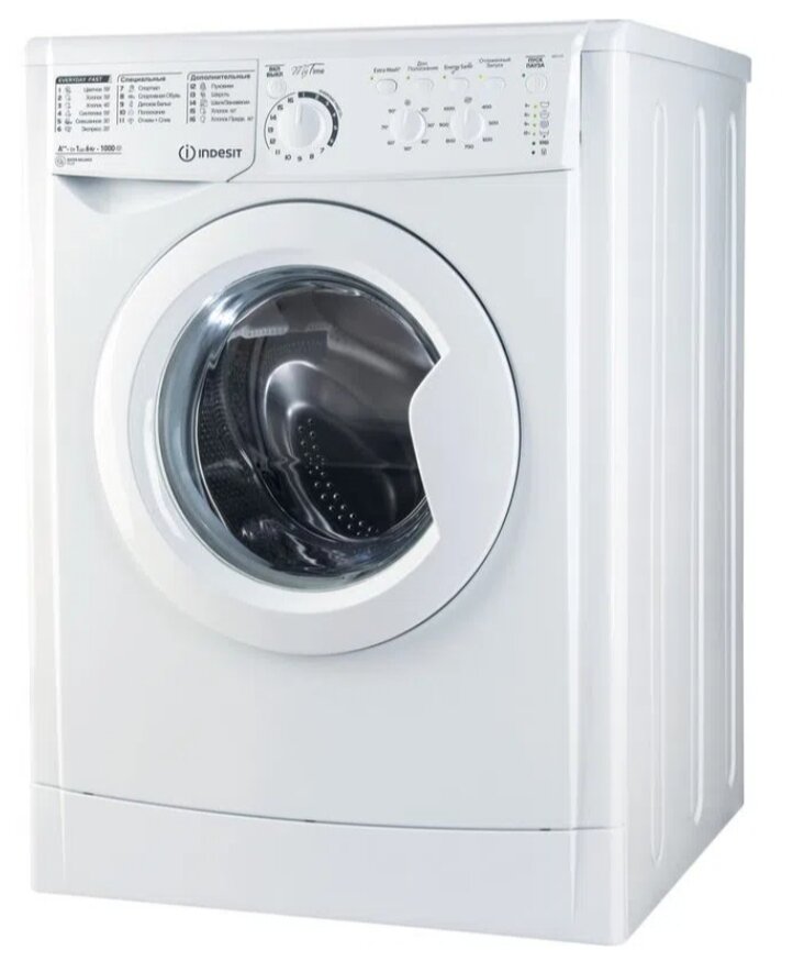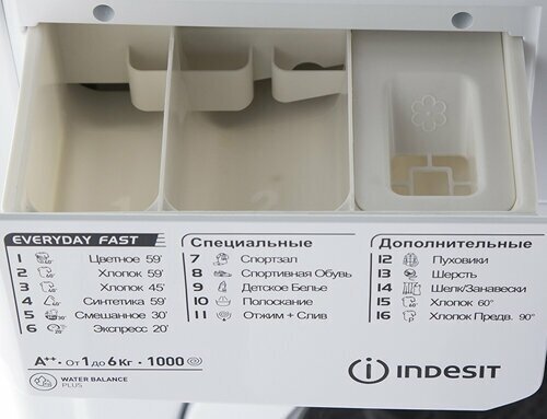 Стиральная машина Indesit использует в работе 16 программ и может постирать до 6 кг белья. Доступны такие востребованные режимы, как стирка спортивной одежды, обуви, одеял, изделий из пуха и детских вещей. Можно откорректировать настройки выбранной программы, уменьшить время цикла.