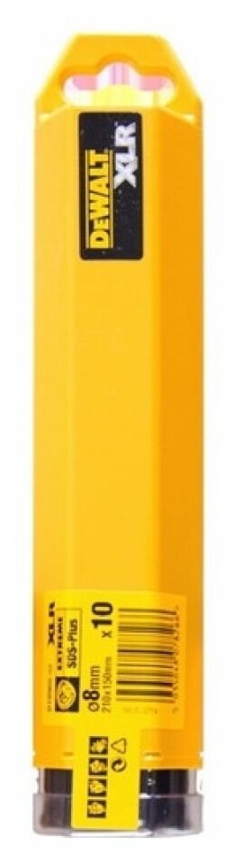 Бур SDS+ XLR DEWALT DT8966, 8х210х150мм, используется в перфораторах с типом крепления SDS-plus. Применяют для сверления отверстий в армированном бетоне, кирпичной кладке, натуральном и искусственном камне. Такой бур имеет повышенный срок эксплуатации.Особенности и преимущества:- Цельная твердосплавная головка с 4-мя кромками позволяет получать чистые круглые отверстия при постоянной скорости сверления, а также исключает заклинивание бура в армированном бетоне.- Усиленная конструкция ствола оптимально передает ударную энергию.- Спираль оснащена 4-мя отводящими канавками, что способствует своевременному отводу шлама.Комплектация: бур - 10 шт; упаковка (пластиковый пенал).
