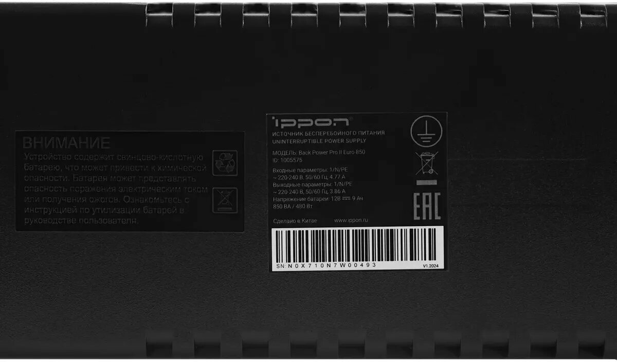 ИБП Ippon Back Power Pro II 850ВA [1005575] Back Power Pro II 850 Euro 1005575 850 ВА, 480 Вт