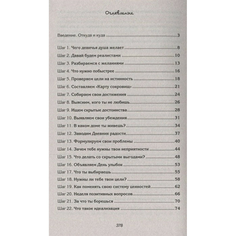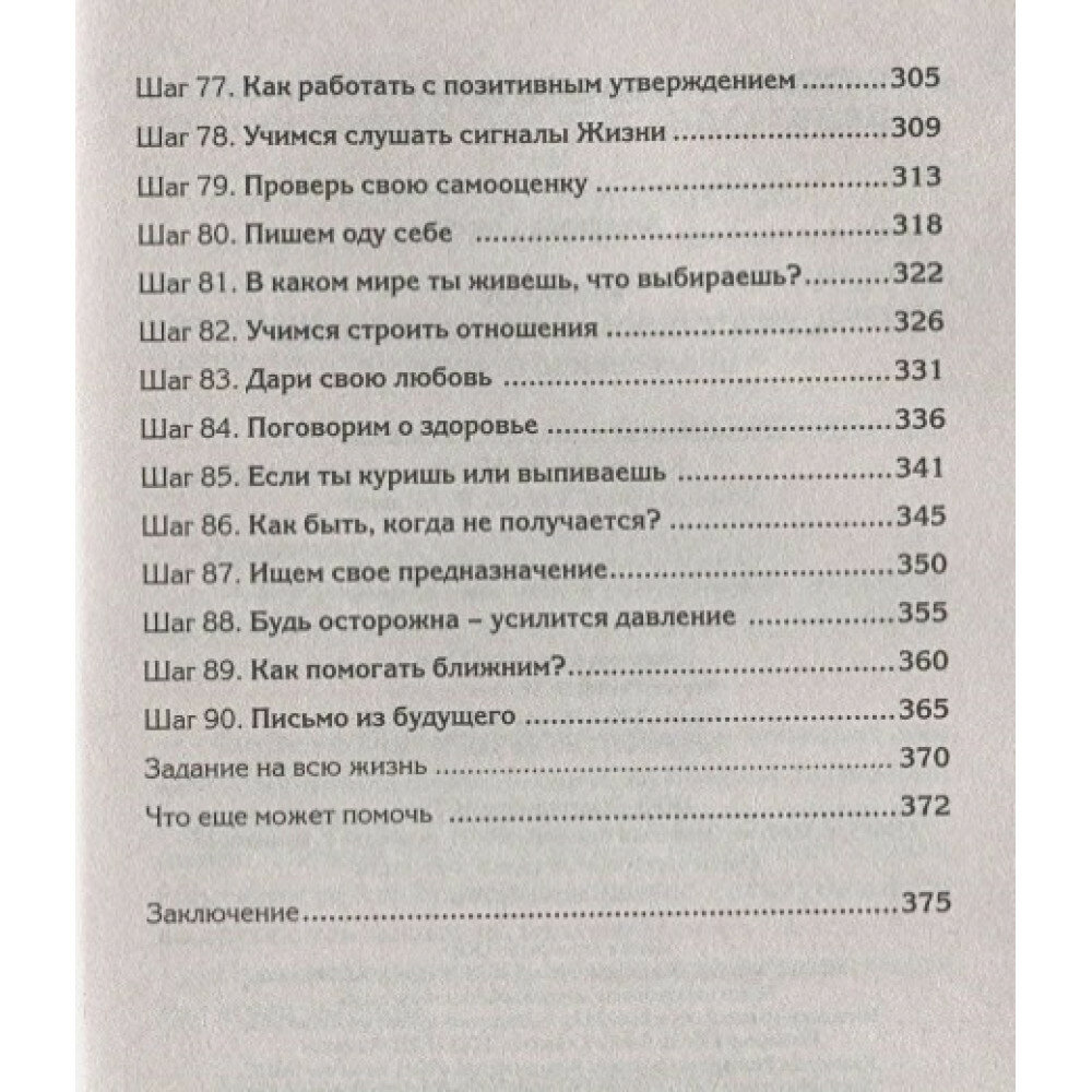 Книгу нужно употреблять постепенно и полностью, тогда она даст серьезный оздоровительный эффект. Это не роман и не чудотворное писание - здесь представлен набор из 90 этапов-шагов, работа над которыми поможет совершить переход из состояния неуверенной Золушки в состояние счастливой Принцессы.