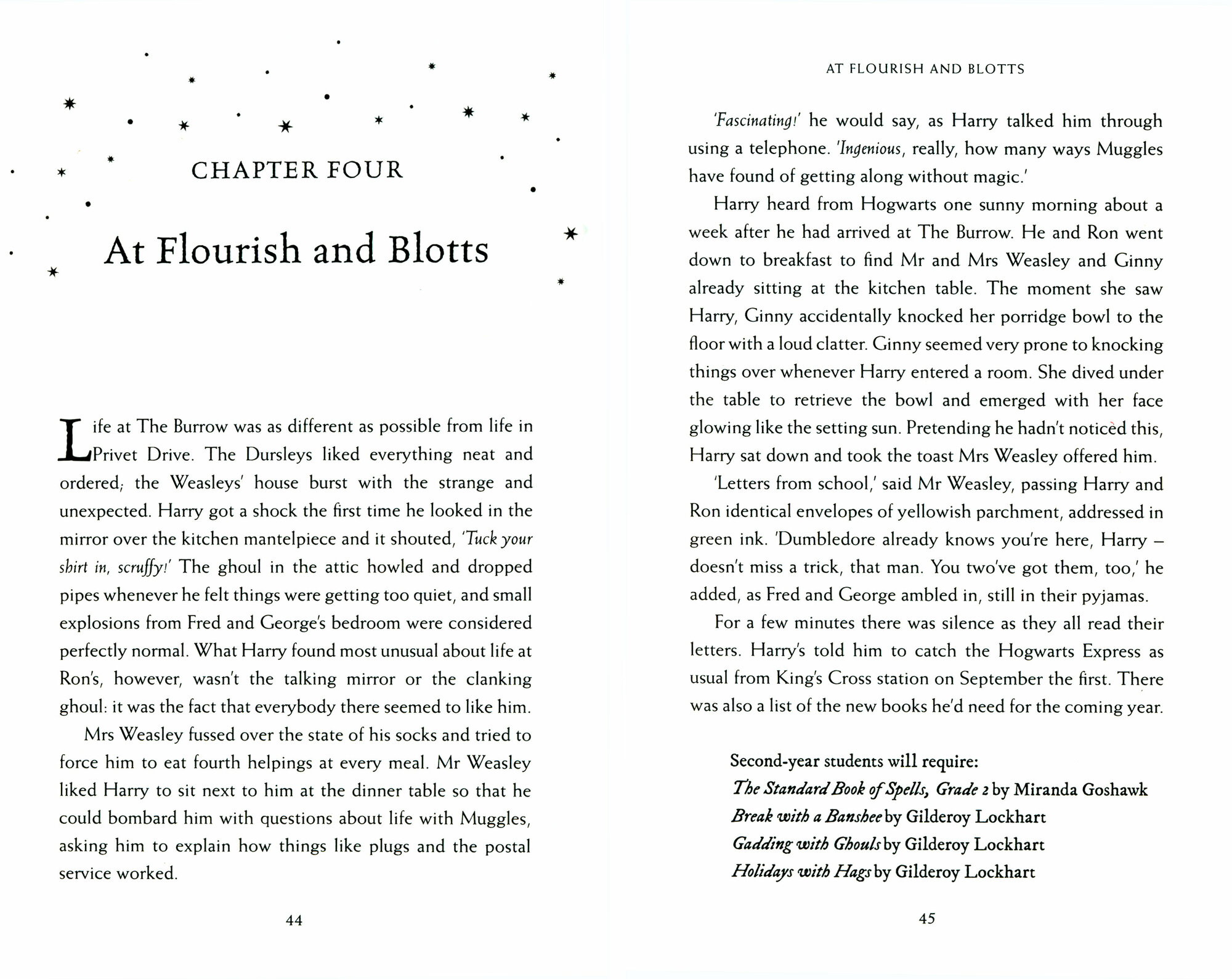 Сразу отмечу, что это очень красивое издание. Книгу приятно держать в руках, а обложка выполнена в стиле факультета Гриффиндор, на котором учатся Гарри и его друзья. Это вторая книга из серии, в которой Гарри изучает новые науки по магии, повышает свое мастерство, встречает новых друзей и преподавателей, а также вновь сражается с Волан-де-Мортом. Сюжет здесь весьма динамичный и нестандартный. Все начинается, как старая добрая комедия, а заканчивается эмоциональной встречей, в которой кому-то придется пожертвовать собой, а кому-то покориться судьбе. Вторая книга о Поттере еще по-детски наивна, но при этом не лишена динамики, поэтому оцениваю её на пятерку.