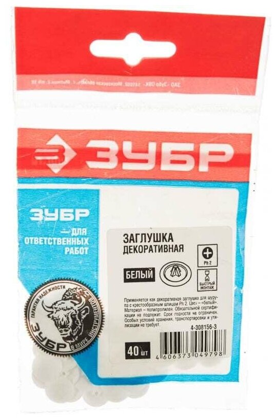 Декоративная заглушка под шуруп ЗУБР »