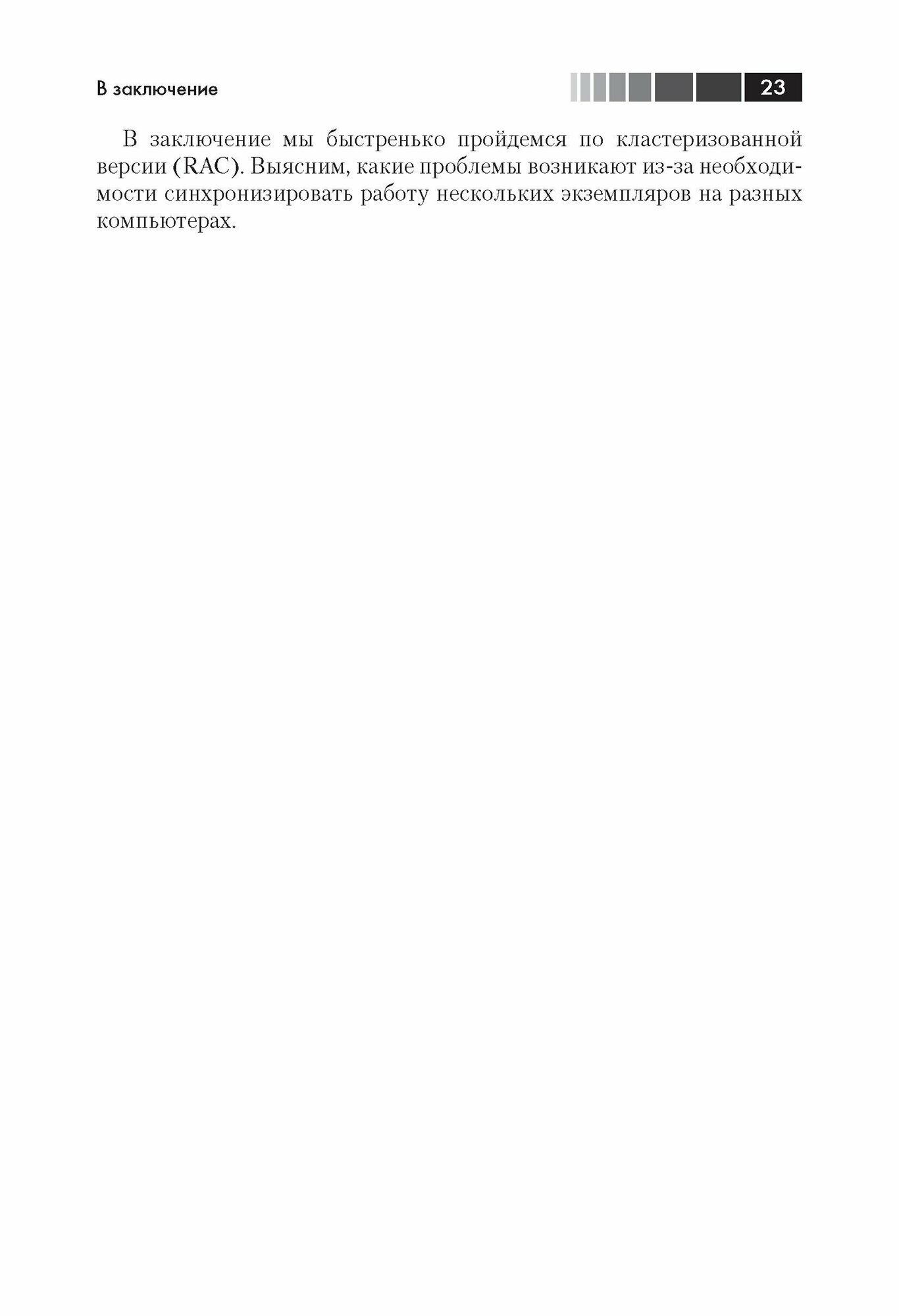 Книга компактная, но очень ёмкая. Автор достаточно просто и понятно описывает внутреннее устройство СУБД Oracle, а также каким образом правильно и эффективно использовать эти знания как в администрировании, так и в разработке баз данных.